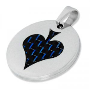 A chic stainless steel pendant with stylish carbon fiber. It comes with a bead chain. It nicely combines the two modern material stainless steel and carbon fiber. It surely is a handsome art work.